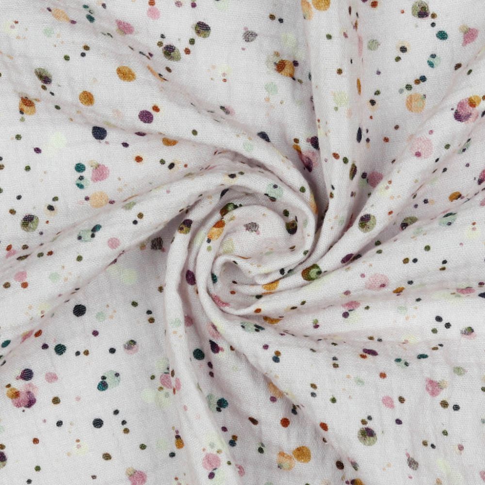 Tissus double gauze gots digital dotsTissus double gauze gots digital dots